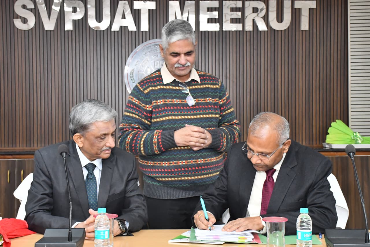 सरदार वल्लभभाई पटेल कृषि एवं प्रौद्योगिकी विश्वविद्यालय में आज नए कुलपति डॉक्टर त्रिवेणी दत्त ने कुलपति का कार्यभार ग्रहण लिया है। उन्होंने कुलपति का चार्ज पूर्व कुलपति डॉक्टर के. के. सिंह से ग्रहण किया। भारतीय पशु चिकित्सा अनुसंधान संस्थान आईवीआरआई में कुलपति एवं निदेशक रहे डॉक्टर त्रिवेणी दत्त को प्रदेश की माननीय राज्यपाल आनंदीबेन पटेल ने मेरठ कृषि विश्वविद्यालय, मेरठ का कुलपति नियुक्त किया है। वर्तमान कुलपति डॉक्टर त्रिवेणी दत्त का कार्यभार ग्रहण करने की तिथि से 3 वर्ष के लिए कार्यकाल निर्धारित किया गया है। डॉ दत्त आईवीआरआई बरेली में वर्ष 2021 और 22 में निदेशक पद पर नियुक्त हुए थे। अपने कार्यकाल के दौरान उन्होंने लंम्पी डिजीज पारवो कैनाइन वैक्सीन, रोहिलखंड भेड़, बकरी, गाय और खच्चर की नस्लो के पंजीकरण समय लगभग 12 प्रौद्योगिकियों का व्यवसायीकरण रिलीज कराया है।
